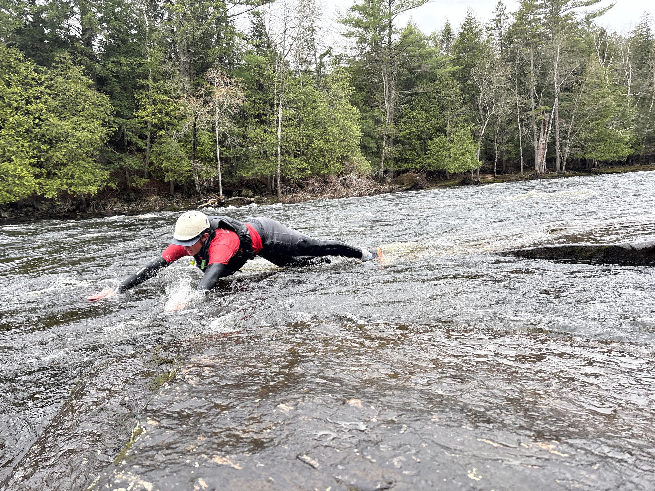 When it gets warm enough, I like to take my swimming outside! As a guide I need to be ready for rescue swimming at any time, so I try to swim a few laps in current to refresh what a white water environment feels like again. Taking a spring paddling course can help gain confidence, both in paddling and swimming! Swimming good lines can improve your ability to read lines in whitewater, improve your confidence, and remind you how fun it is to be in a whitewater environment.