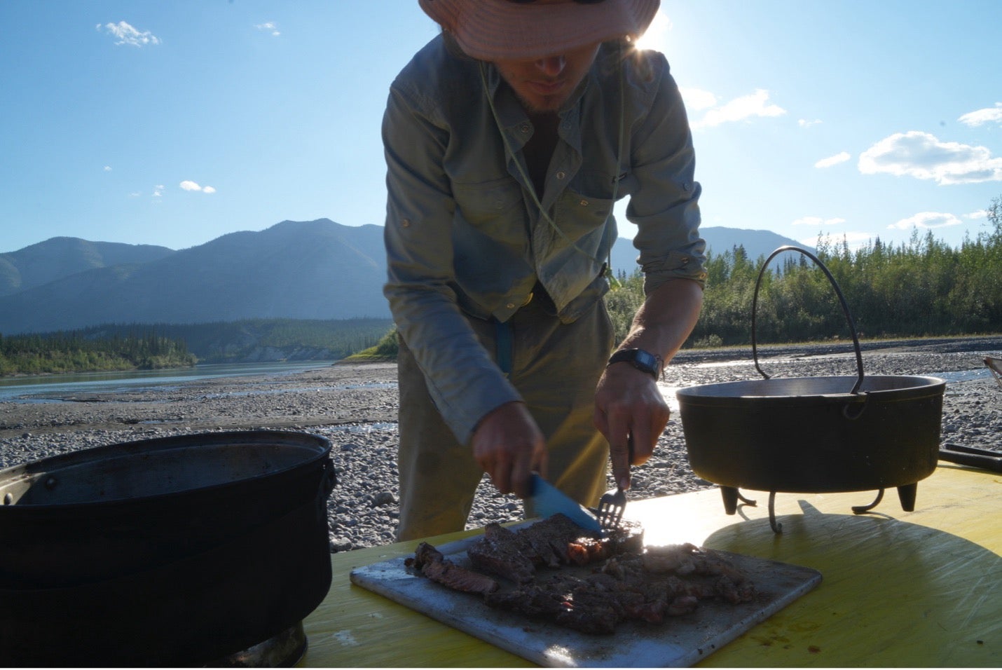 The meal that takes the cake for me (and not the actual cake we have on day 6) is the dinner we usually have on day three of our longer northern trips. Steak and BBQ-style potatoes and vegetables. This is a classic for me at home, and it comes at a point in the trip when the group is really getting to know each other and come together. There’s nothing quite like a good wood fired steak on the shore of a beautiful mountain river with great people.