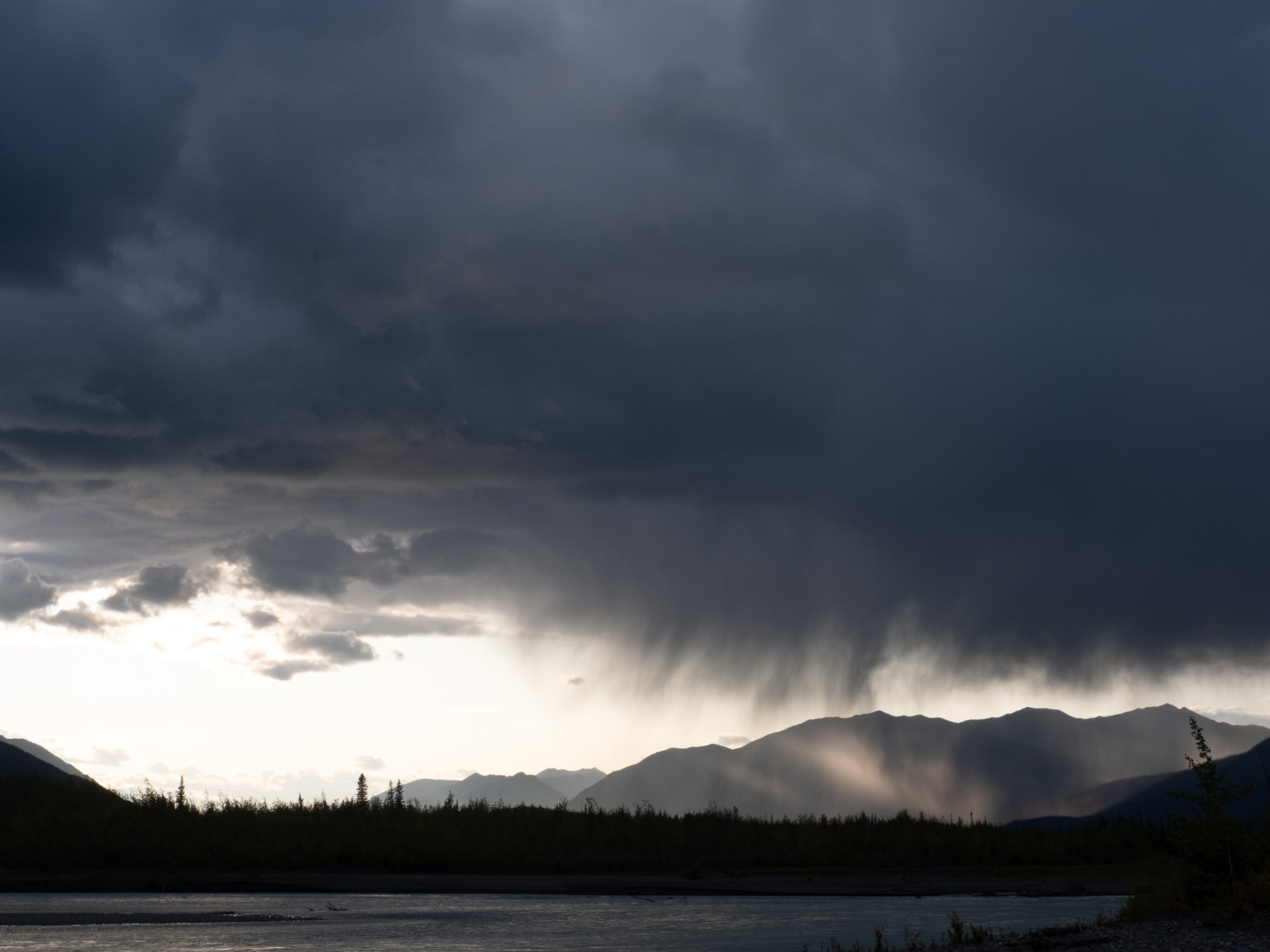 I love travelling in the backcountry for so many reasons. And one of the ones that I have come to truly appreciate over the years is that we travel with minimum gear and minimum clothing. At home I have multiple options to choose from each day, whereas out there I have one or maybe two. This not only takes away the need to choose what I wear each day (aside from dressing for the weather), but it also teaches me to take exceptional care of the little I have. When things get wet, I often can’t change into something else, and there are limited options for drying clothes on a river. I can’t rely on a sunny day when there might not be any, or a heat wave that may never come. So, I’m conservative. On the river, I have my drysuit to keep me dry. In camp, my rain layers are always handy no matter where I am, so that if I anticipate weather rolling in, or feel a drop, I can put it on right away and ensure my precious layers stay dry. Keep in mind that the weather changes quickly in the north, and particularly in the mountains, and can last for days. My rain gear is my constant companion.