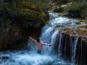 Waterproof boots + merino wool socks + gaiters is a winning combo. Keep your feet dry, and the rest of your body will be much happier. If you’re debating whether a stream crossing is jumpable… don’t do it! Wet feet are tricky to recover from.